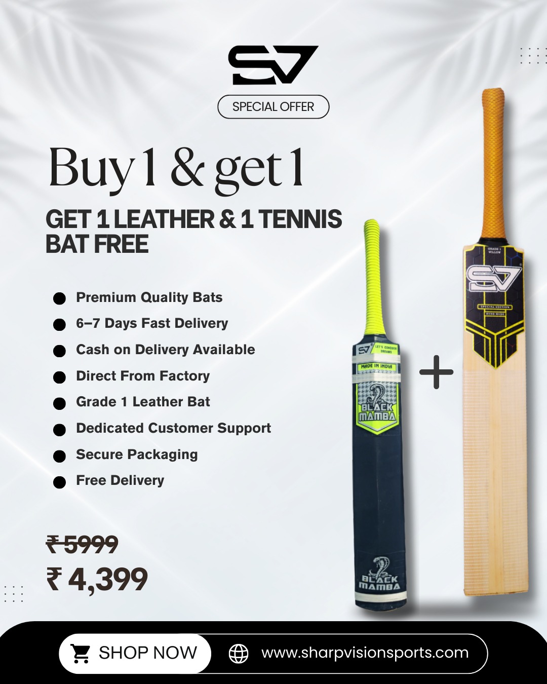 S.V Premium Leather Bat Combo | Buy 1 Get 1 Free