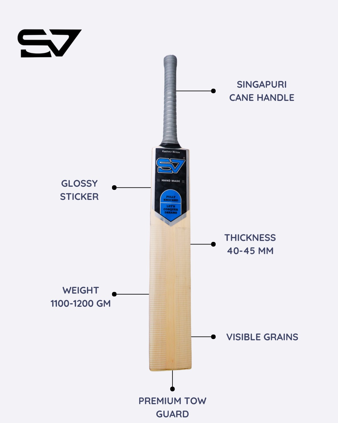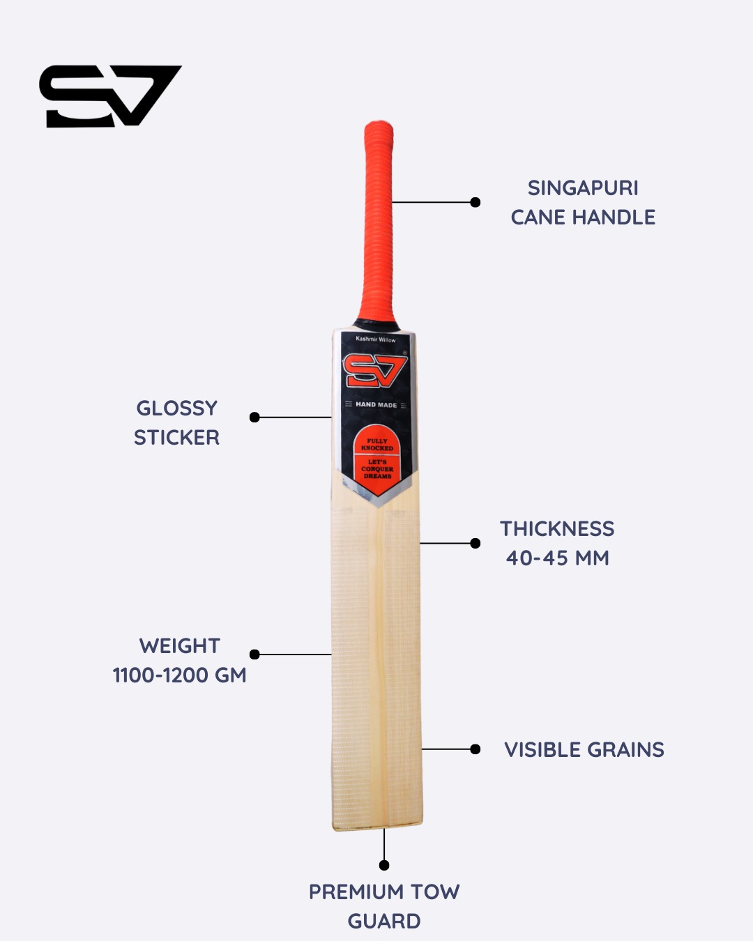SVS Cricket bats are crafted by selecting high-quality wood, shaping clefts, customizing handles, and attaching them. The bat is then shaped, inspected, optimized, finished, and sealed for peak performance.